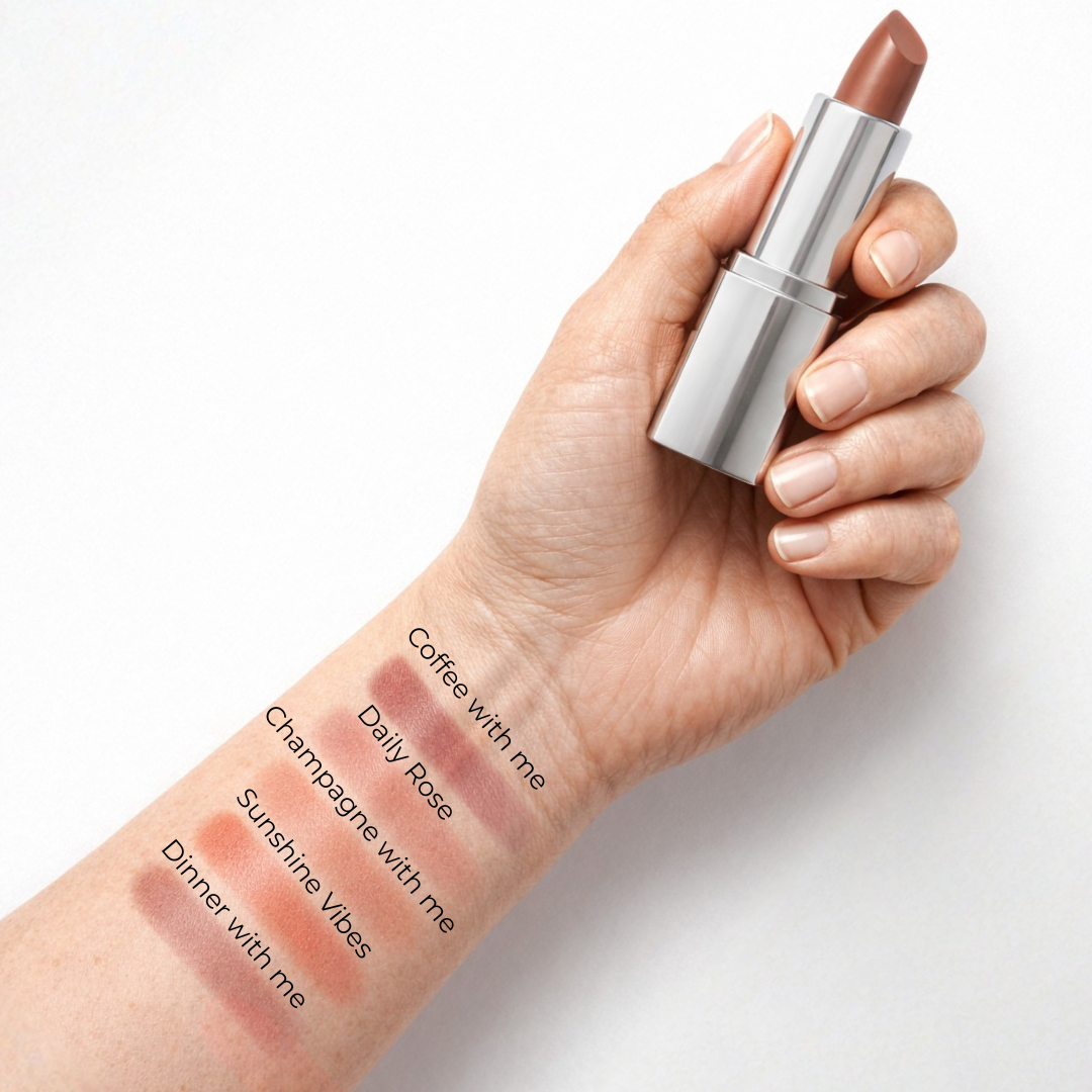Der Velvet Lipstick 04 – Sunshine Vibes bringt mit seinem sanften Korallton Frische und Leichtigkeit in deinen Look. Angereichert mit Bienenwachs, Maulbeerbaumextrakt und Passionsblumenöl pflegt er die Lippen intensiv und schützt sie vor dem Austrocknen. Die zarte Farbe und die cremige, leichte Textur sorgen für einen natürlichen Glanz und ein angenehmes Tragegefühl – ideal für sonnige Tage oder als frischer Akzent im Alltag.