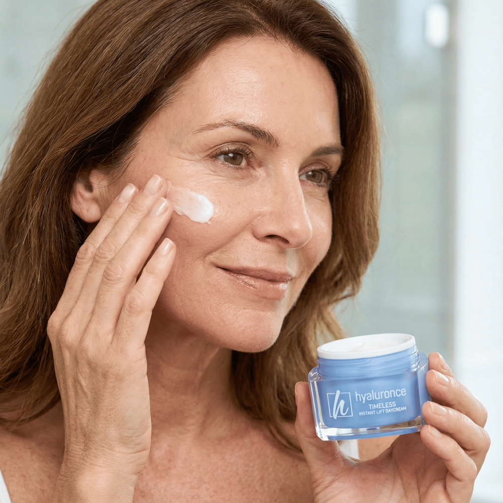 Die hyaluronce Timeless Instant Lift Daycream ist eine glättende Tagespflege für ein sichtbar gepflegtes und frischer wirkendes Hautbild.