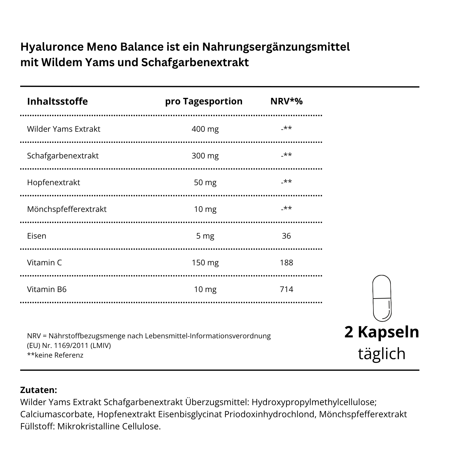 ✓ pflanzlicher Premiumkomplex mit wildem Yams, Schafgarbe, Hopfen und Mönchspfeffer