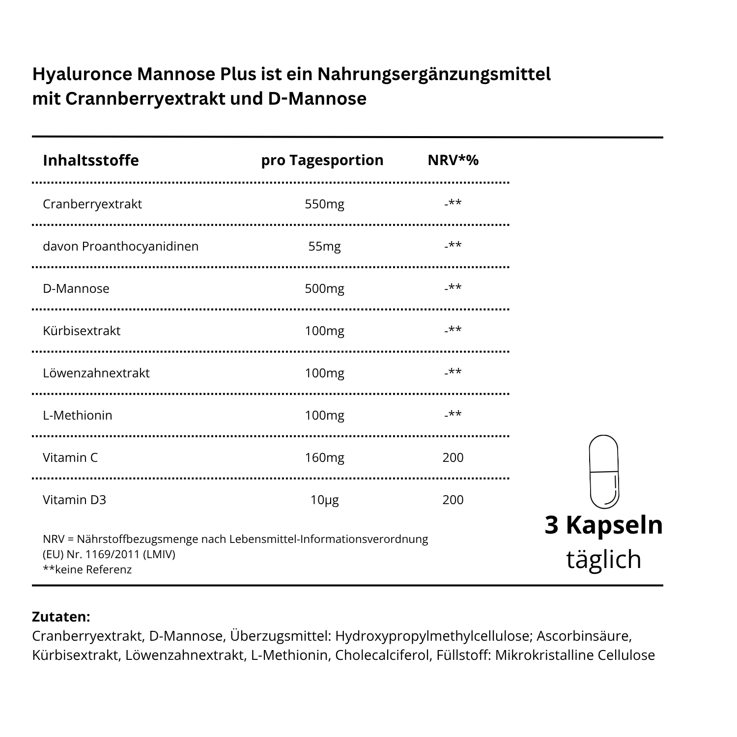 hyaluronce Mannose Plus 90 Kapseln ist auf Lager und wird versandt, sobald es wieder verfügbar ist