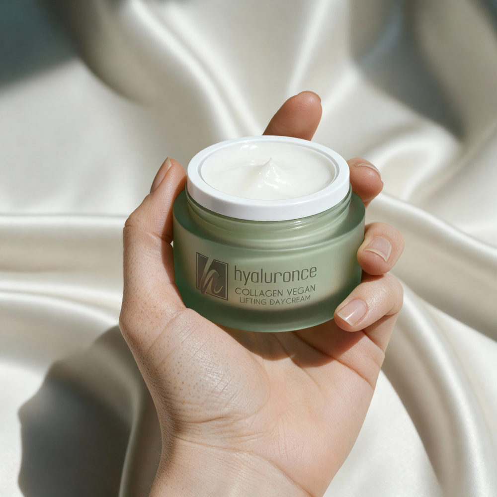 Die Vegan Collagen Lifting Daycream von hyaluronce ist deine tägliche Pflege für ein glattes, vitales Hautbild – ganz ohne tierische Inhaltsstoffe. Die pflanzenbasierte Formulierung mit veganen Collagen-Aminosäuren, antioxidativem Astaxanthin und hochwirksamen Peptiden ist ideal auf die Bedürfnisse reifer, feuchtigkeitsarmer und sensibler Haut abgestimmt. Nährendes Jojobaöl, Squalan und Vitamin E pflegen die Haut geschmeidig, während Allantoin, Urea und Sorbitol beruhigen und intensiv durchfeuchten. Die leichte Textur zieht schnell ein und eignet sich perfekt als Tagespflege unter dem Make-up. Für alle, die High-Tech-Pflege mit klaren Werten suchen: vegan, wirksam, modern – für sichtbar glattere Haut mit natürlicher Ausstrahlung.